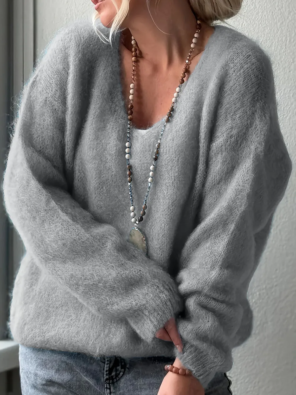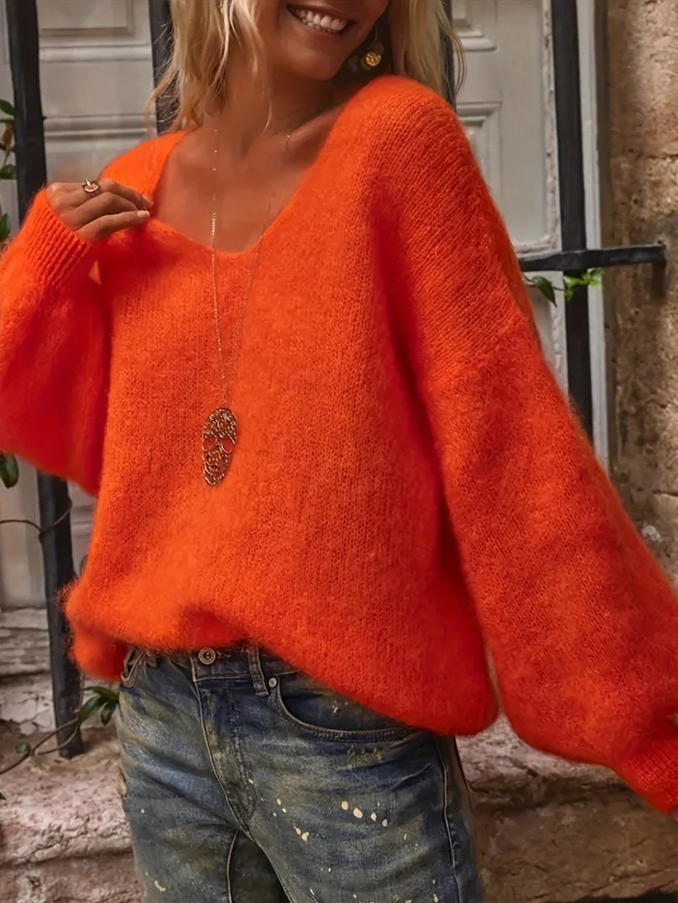 Lady Casual V Neck Sweater Fashion Solid Long Sleeve Pullover Soft Loose Sweaters Tops For Women Autumn Winter Womens Clothing